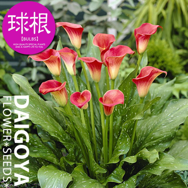 南アフリカ原産の多年草で、日本へは江戸時代末期にオランダから渡来しました。里芋のような球根を持ち、渡来した経緯からカイウ(=海を渡って来た芋)と呼ばれることもあります。